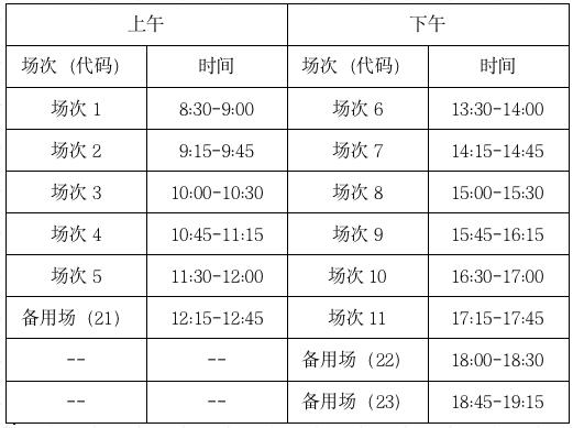 英语四级口语考试(CET-SET4)考试时间为11月19日,英语六级口语考试(CET-SET6)考试时间为11月20日,具体场次安排如下: