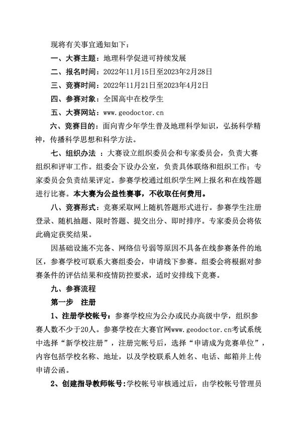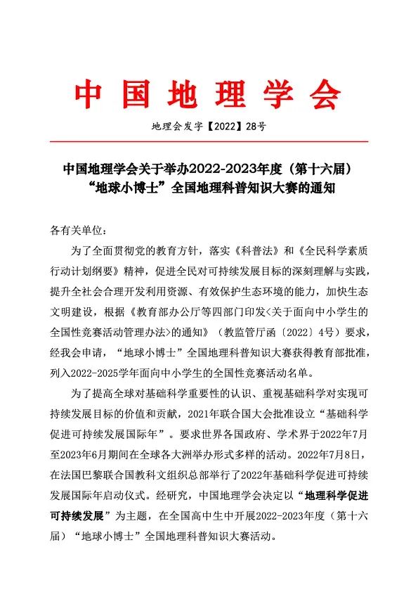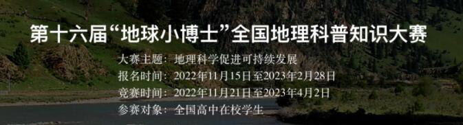 教育部竞赛白名单项目:2023第十六届“地球小博士”全国地理科普知识大赛通知 发布时间:2022-11-11 09:04:59 阅读量: 本文数据来源:地球小博士官网,http://www.geodoctor.cn/sy