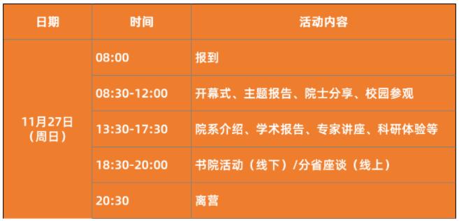 参营人数:本次体验营拟招收400人,其中线下参与120人(在深圳市中学就读学生);其余省份线上参与280人。