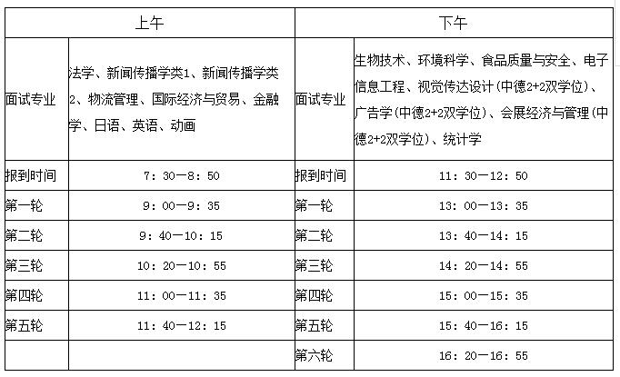 ⇒ 面试时间:4月15日,分上午场和下午场分别报到,见下表: