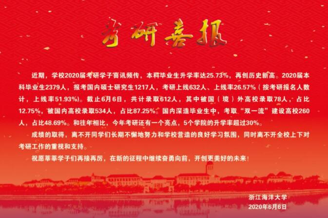 喜报!浙江海洋大学2020届本科毕业生升学率达25.73%