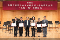 2020年12月12日上午,中国音乐学院高水平研究型大学建设大会暨五院一地授牌仪式在学校国音堂音乐厅隆重举行。大会由学校党委书记王旭东主持。 中国音乐学院于1964年创建,素有中国