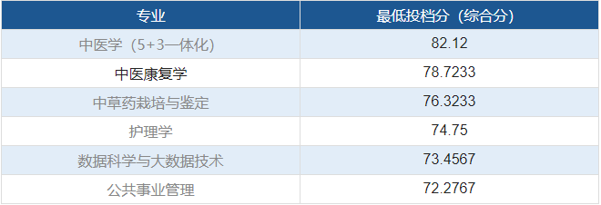 按照浙江省2022年招生录取进程,浙江中医药大学2022年浙江省三位一体综合评价招生录取工作结束。2022年本校三位一体投档情况如下: 专业 最低投档分(综合分) 中医学(5+3一体化)