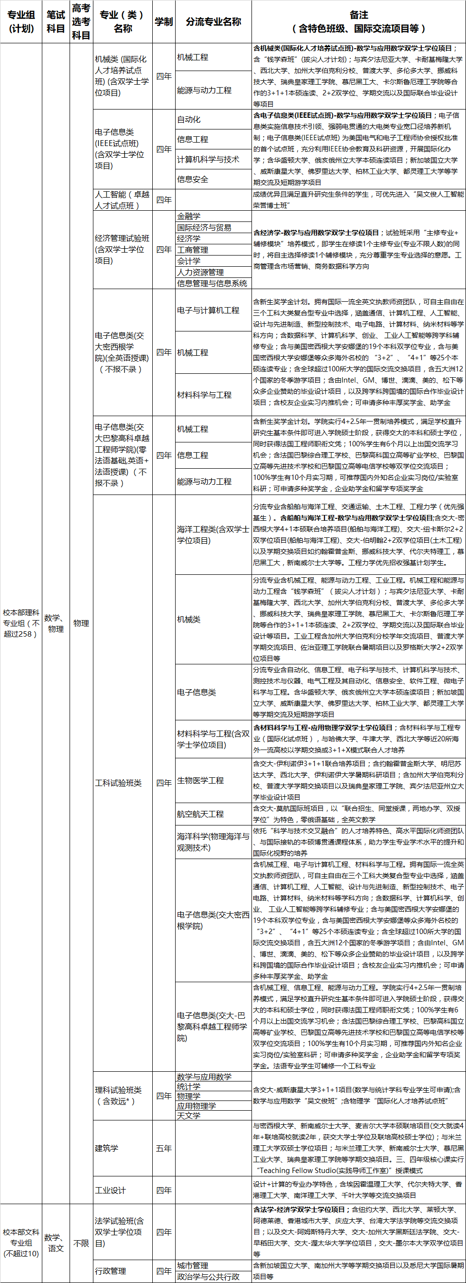 注:交大密西根学院、交大-巴黎高科卓越工程师学院、临床医学五年制(英语班)仅录取有志愿的考生;