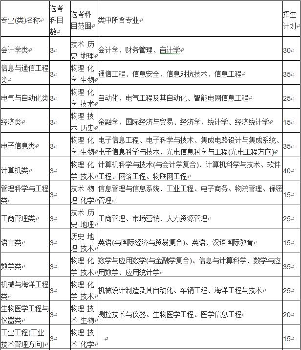 第十二条 学校“三位一体”综合评价招生面向浙江省招生,总计划数360名。具体招生专业、计划如下表: