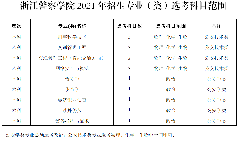 (六)招生计划分全省统招专业和分市专业。报考全省统招警务指挥与战术专业的,必须填写第一专业志愿,否则无效。报考分市专业的,须根据选考科目要求先选择专业类(公安学类或公安技术类),再选择具体专业,选考科目均符合要求的可兼报两大类及具体专业。