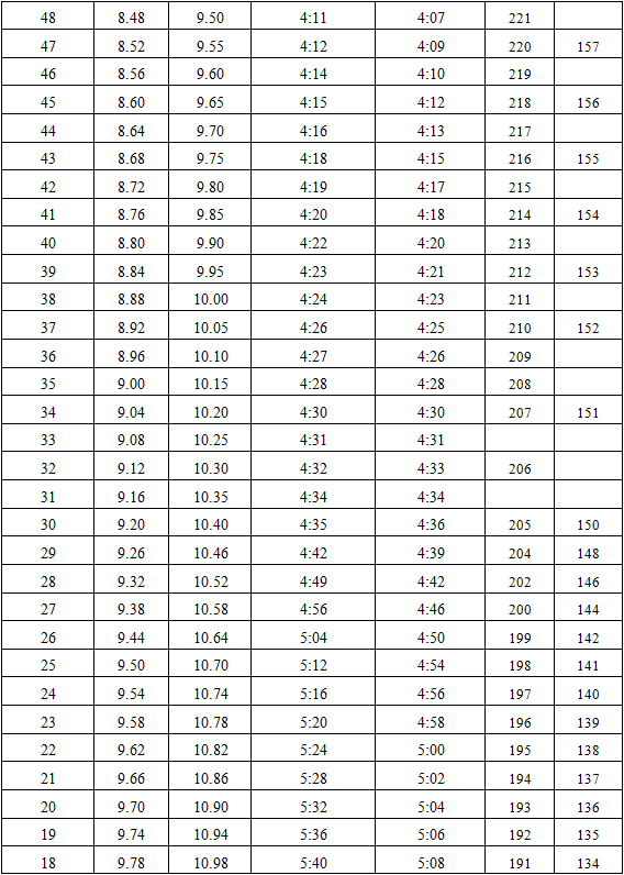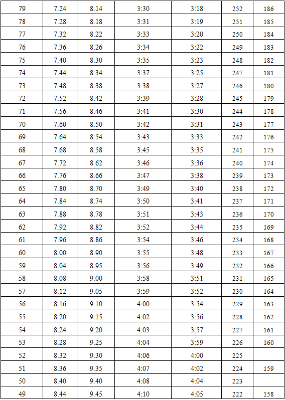 (3)1000 米跑(男)/800 米跑(女)。可测次数:1次, 合格标准:男性≤4分35秒,女性≤4 分36秒。
