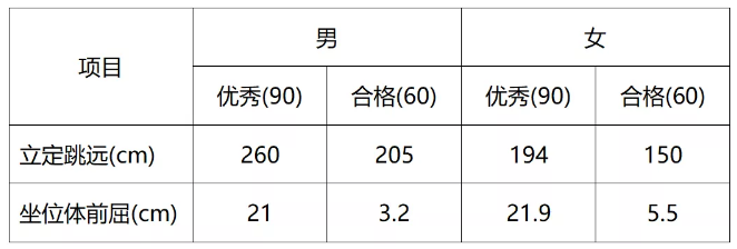 1.体育测试项目为坐位体前屈和立定跳远两项,执行《国家学生体质健康标准》(高三毕业生评价指标)(详见附件),所有考生均需参加。凡有一项测试不合格者即失去参加综合能力测试资格。因身体原因不能参加体育测试的考生,须出具相关证明;因临时生病不能参加体育测试的考生,须凭县级以上医院病历办理缓测手续,录取后在新生报到前先行参加测试并合格后方可办理新生报到手续。