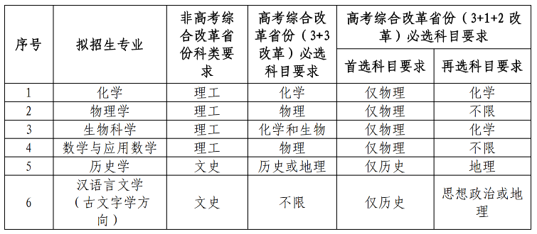 高中阶段在中学生学科奥林匹克竞赛(数学、物理、化学、生物、信息)中获得全国决赛二等奖及以上奖项的考生,高考总成绩达到本科一批控制线(不划定本科一批控制线的省份,参照省级招生考试机构相关划线标准执行,高考总成绩不含政策性加分),考生科类(高考综合改革省份的选考科目)与我校要求相匹配。