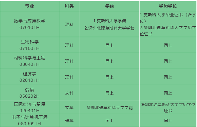 1. 学校双学籍专业被录取的学生将获得深圳北理莫斯科大学和莫斯科大学两校学籍,达到毕业要求者,颁发深圳北理莫斯科大学毕业证书。对符合学士学位授予条件的本科毕业生,授予学士学位并颁发学位证书。符合莫斯科大学规定的本科毕业生,可以申请颁发莫斯科大学毕业证书(含学位)。