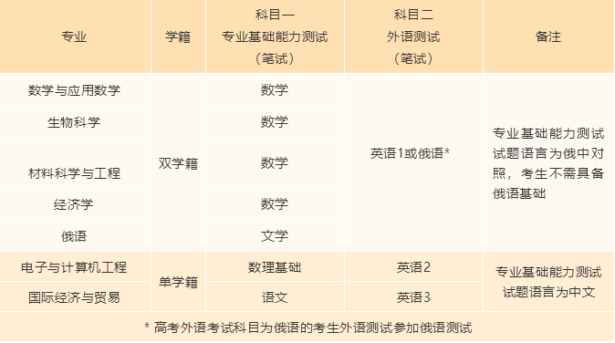 3.学生填报专业时请注意,学校测试科目不同的专业不可兼报,如填报双学籍专业,不可兼报单学籍专业;在双学籍专业中,填报俄语专业后也不可兼报其他专业。