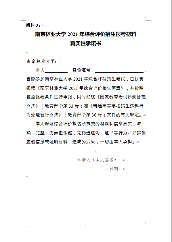 1.我校在江苏省教育厅和省教育考试院的领导下,认真落实相关政策要求。南京林业大学本科招生工作领导小组全面负责综合评价招生工作,学生工作处、教务处负责具体工作的组织和实施。综合评价招生工作接受学校纪检监察机构全过程监督,并接受社会监督。学校纪检监察机构监督电话:025-85428753。