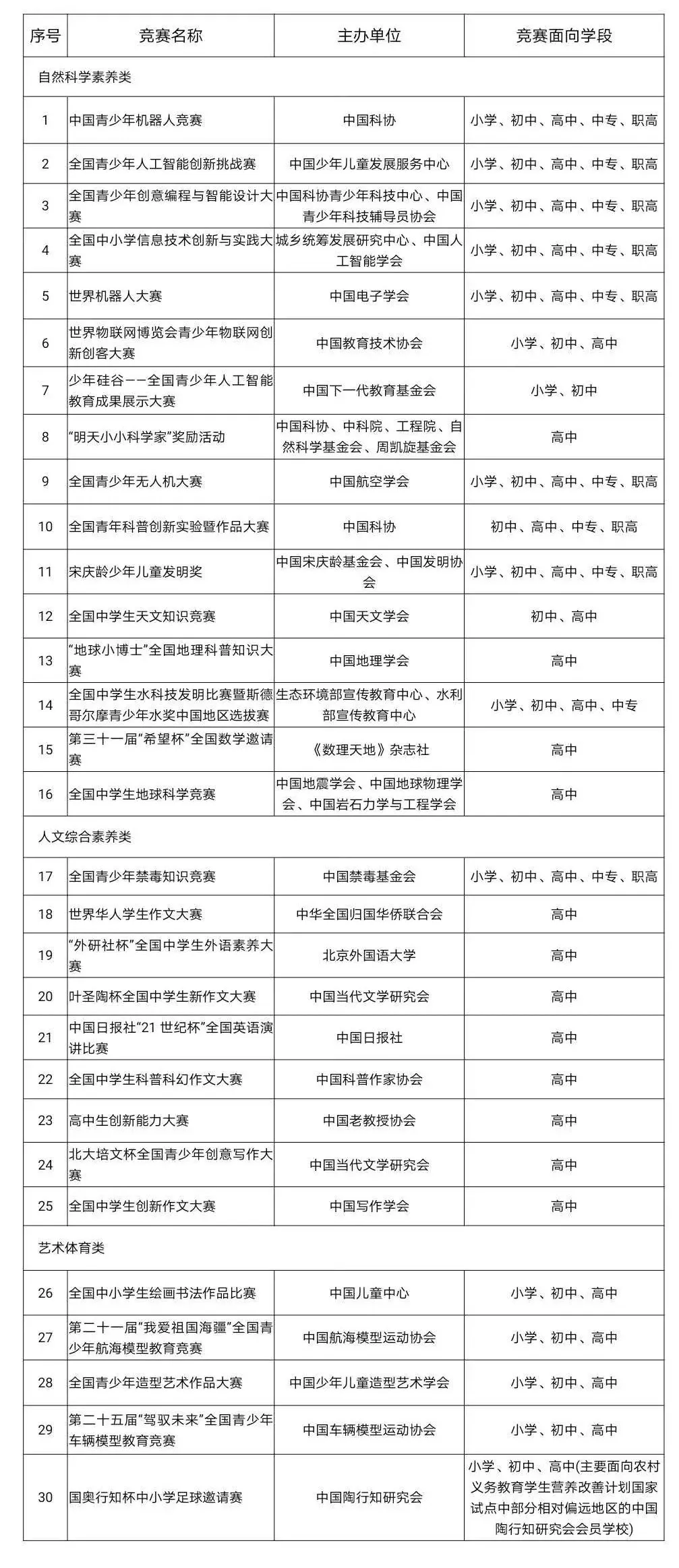附:2020-2021学年面向中小学生的全国性竞赛活动名单