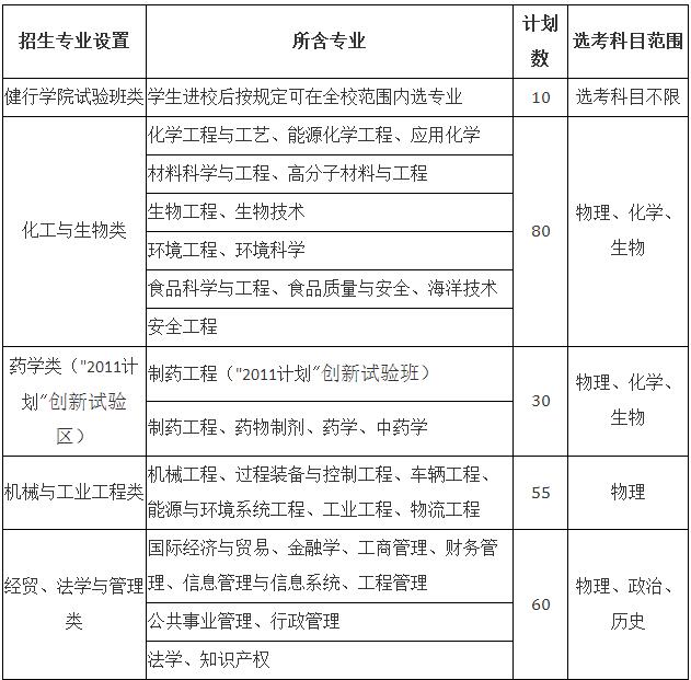 学校“三位一体”综合评价招生面向浙江省招生,总计划数为420名。具体招生专业类设置、所含专业、计划数及报考相关专业所需的选考科目范围如下表。