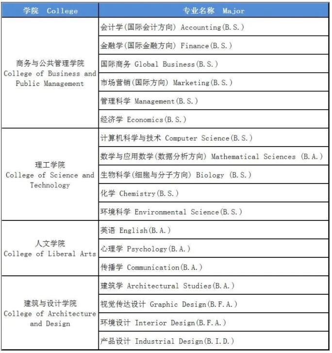 第六条 学校将开放当年所有本科专业并接受申请,具体专业名称与学位如下: