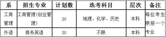 (4)外语语种:报考商务英语专业考生外语语种要求英语,工商管理(创业管理)专业外语语种不限。本校外语公共课为英语。