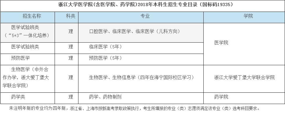 第十一条根据医药类考生报考特点,浙江大学医学院、药学院和浙江大学爱丁堡大学联合学院所属的医学试验班类、预防医学、药学类和生物医学(中外合作办学)专业等,以浙江大学医学院(国标码19335)实行单独招生代码,单列招生计划,单独设定提档分数线,实行单独录取。