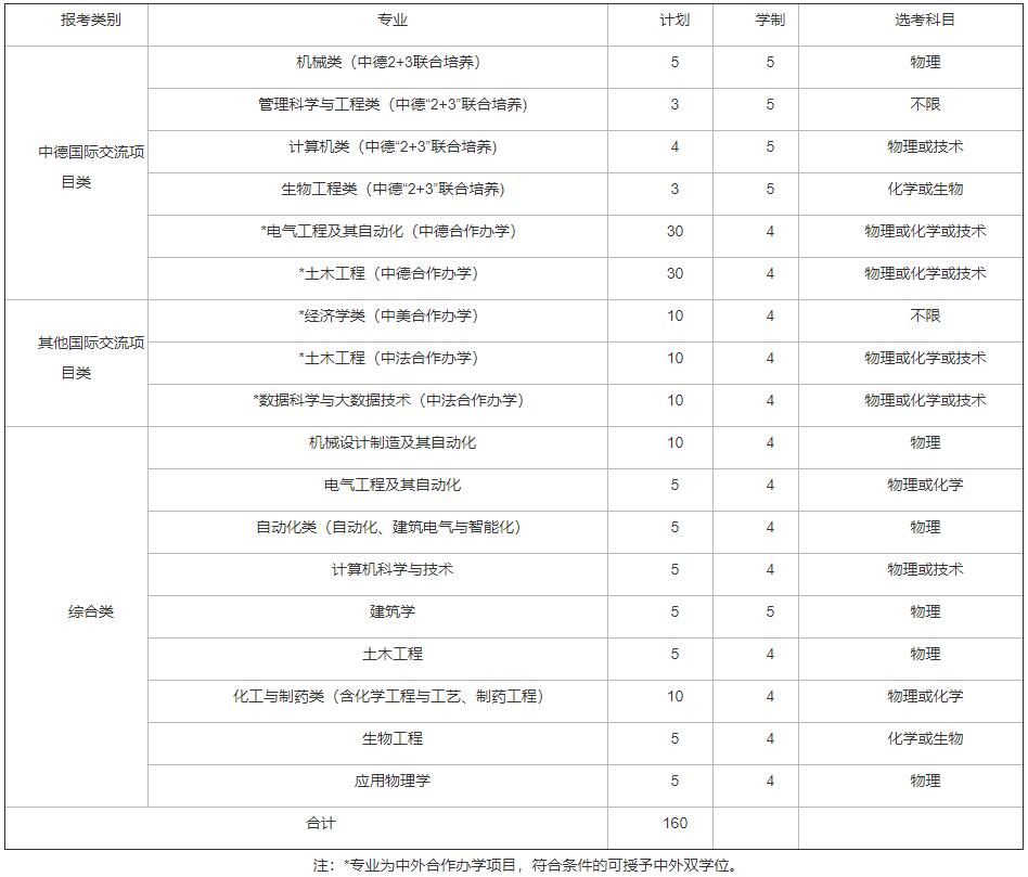 第二十一条 录取阶段外语单科及选考科目成绩要求:报考中德“2+3”联合培养项目各专业的考生外语单科成绩不低于110分、数据科学与大数据技术(中法合作办学)、土木工程(中法合作办学)、经济学(中美合作办学)的外语单科成绩不低于100分;选考科目要求与省考试院网站已公布的统一高考选考科目要求一致。