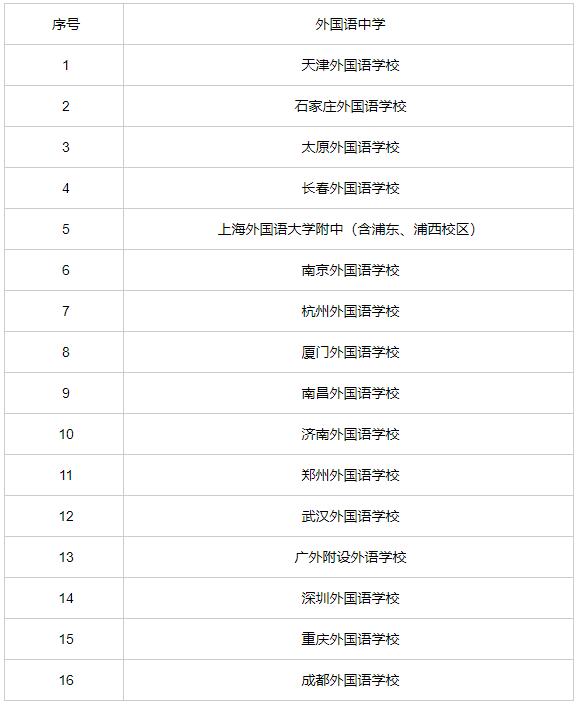 2019年具有推荐保送生资格的外国语中学名单