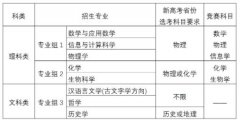 招生计划 120名 招生专业 数学与应用数学、物理学、化学、生物科学、汉语言文学(古文字学)、历史学6个专业。具体科类及科目要求如下: 序号 招生专业 非高考综合改革省份科类要求