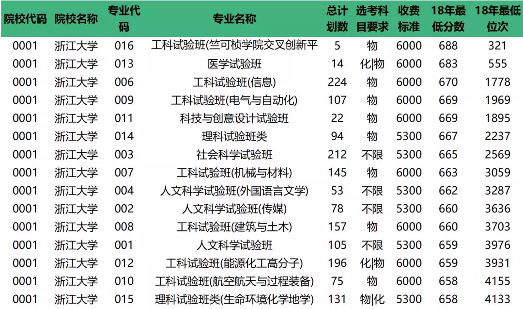 2019年浙江大学对学校专业进行了优化升级,从128个专业优化到90个左右。2019年浙大三位一体招生专业数共54个,较去年减少12个,将更加适合学校宽口径培养,提升学生的全方位素养。总体来看,增加的专业含金量较高,减少的专业是相对偏冷门的,已被剔除。