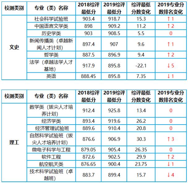 整体分数上升的平均值为18.1分。这个情况和2019年高考分数普遍高于2018年有着很大的关系。其中药学、公共事业管理、临床医学(5年制,儿科医学方向,卓越医生计划)、自然科学试验班(拔尖人才培养计划)、软件工程变化幅度最大。而法学(卓越法学人才基地)专业爆冷降低22.1分。导致这样的情况很有可能是该专业在2018年分数奇高,导致很多2019年的学生望而却步。使得该专业2019年分数下降幅度如此之大。