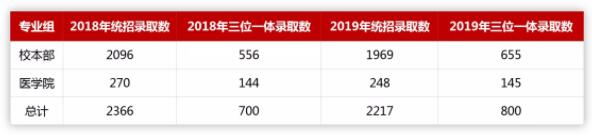 以上数据仅包括本科一批、提前批和三位一体招生录取人数,不包括高校专项及自主招生录取人数。从表格中可以看出,2018年浙江大学高考共录取3066人,2019年浙江大学高考共录取3017人,两年总录取人数变化不大。2018年统招录取人数多于2019年,2019年三位一体录取比2018年增加了100人。