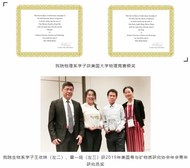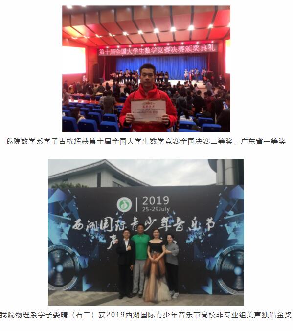 在跨学科视野培养和教学名师的引领下,理学院学子开拓、进取、创新、包容,具有国际视野和全面发展能力,学生团队多次在美国大学生数学建模竞赛、美国大学物理竞赛、美国骨与矿物质研究协会年会、全国大学生数学竞赛、四川遂宁国际国标舞公开赛、广东省“攀登计划”等国内外重大竞赛、活动中崭露头角。