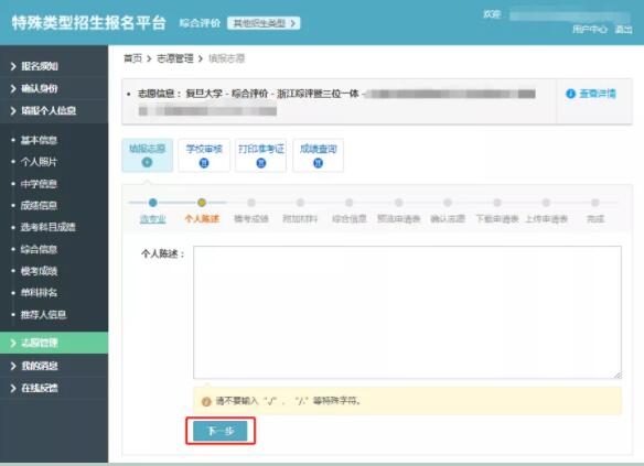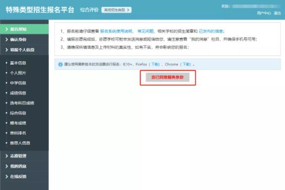 (2)若之前未在“阳光高考特殊类型招生报名平台”参加过其他项目的报名,请认真阅读每一步骤的填写说明,按照要求仔细填报,确认无误后并提交。