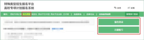 1.登录“阳光高考特殊类型招生报名平台”,点击报名登录(网站链接如下:https://gaokao.chsi.com.cn/zhpjbm/)