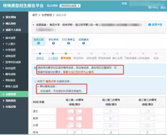 (3)个人信息栏成绩必填,若没有成绩可填无,综合信息非必填,推荐人信息不用填。