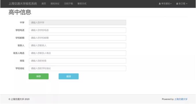 1、注册信息。考生登录上海交通大学报名系统,使用考生本人身份证号码注册信息,手机号可以使用家长的,完成注册之后建议考生抄录账号和密码,以免忘记。