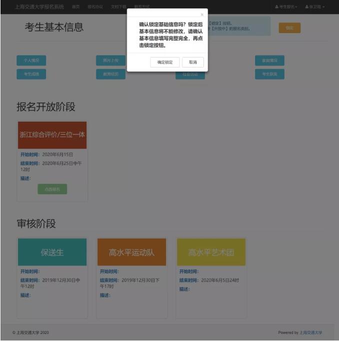 11、完成。考生基本信息填写完成后可以点击锁定,信息锁定后不能修改,所以各位考生一定要再三检查确认。