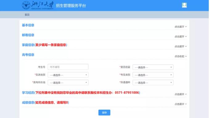 6、高考信息填写。考生按照系统要求填写生源、高考所在地、考生类别等相关信息。