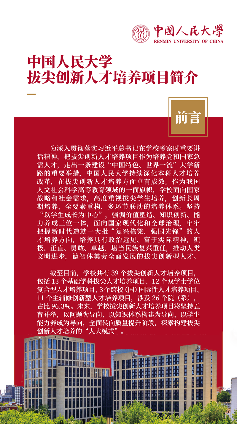 中国人民大学2022年拔尖创新人才培养项目全介绍
