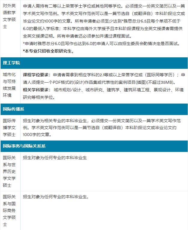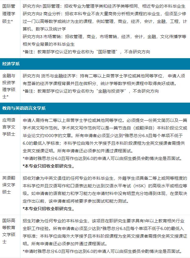 此外,一部分授课型硕士学位项目对于本科阶段的学习经历有具体要求。