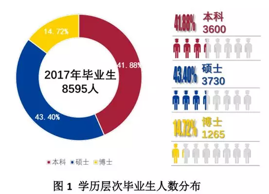 上海交通大学2017届毕业生共8595人,本科生与研究生比例分别为41.88%和58.12%。