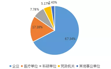 2017届选择就业的毕业生大多去了企业(67.34%),另有相当一部分毕业生在医疗卫生单位就业。具体去向分布如下图: