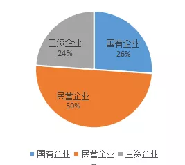在企业就业的毕业生中,去往民企的人数最多,占50%;在国企和三资企业就业的学生比例大致相当。