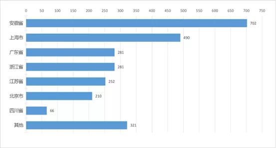 从就业单位所在地来看,在安徽省内工作的比重最高,其次是邻近的上海市。中科大毕业生流向排名前五的省份还有经济发达且距离较近的广东、浙江和江苏。