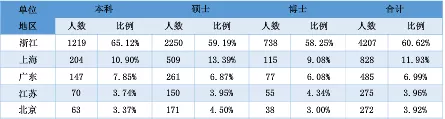 浙大2017届毕业生实际就业的6940人中,主要地区流向前五名为浙江、上海、广东、江苏和北京。其中在浙江本省就业的毕业生占60.62%。
