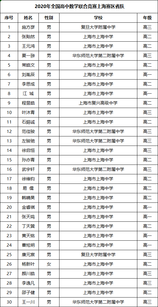 浙江、北京、河北等9省市2020全国高中数学联赛省队省一获奖名单公示