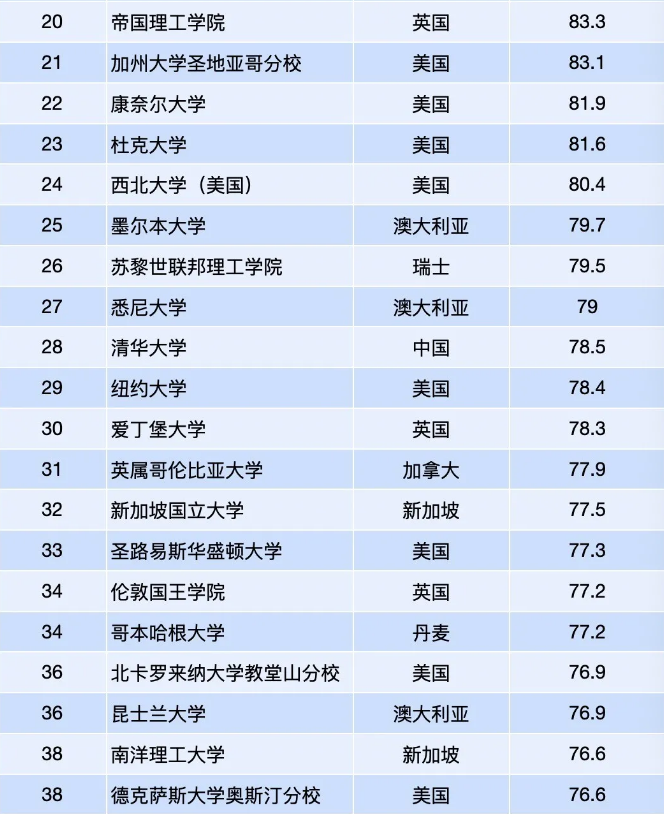 1. 本次排名针对来自86个国家的近1500所顶尖大学进行调研得出;