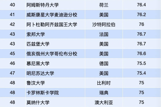 ▎世界50强高校名单