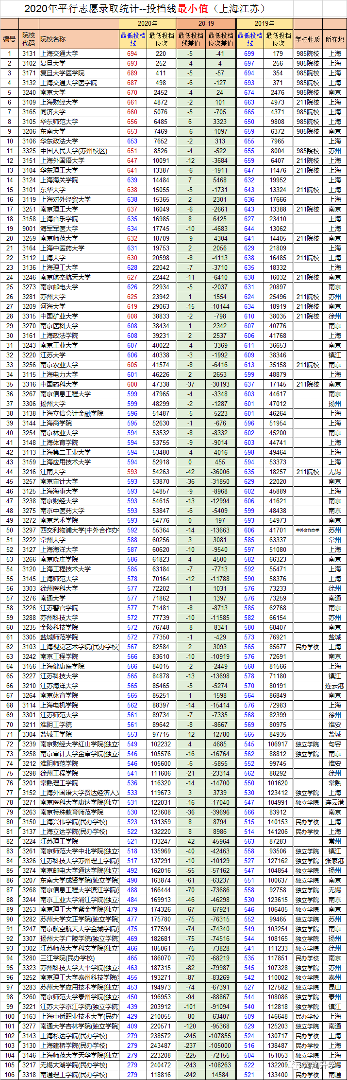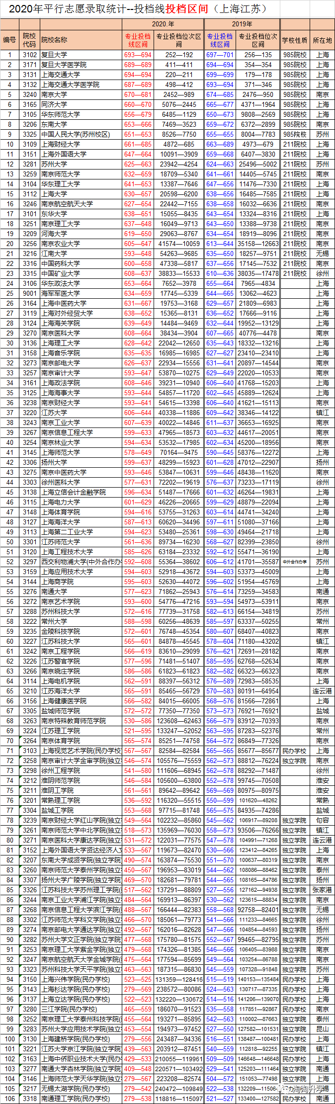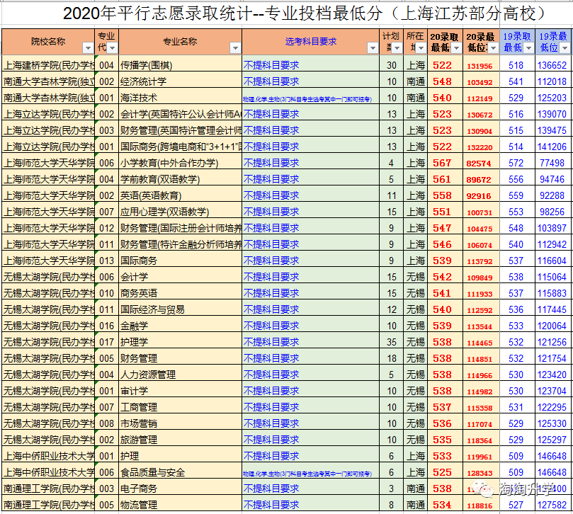 为让学生和家长了解上海所有本科高校的录取区间,我们整理了2020年在浙江招生的上海江苏全部本科高校的投档线区间和投档位次区间,供各位考生和家长参考。想要进入那一层次的高校,你就要准备多少的分数才有机会。