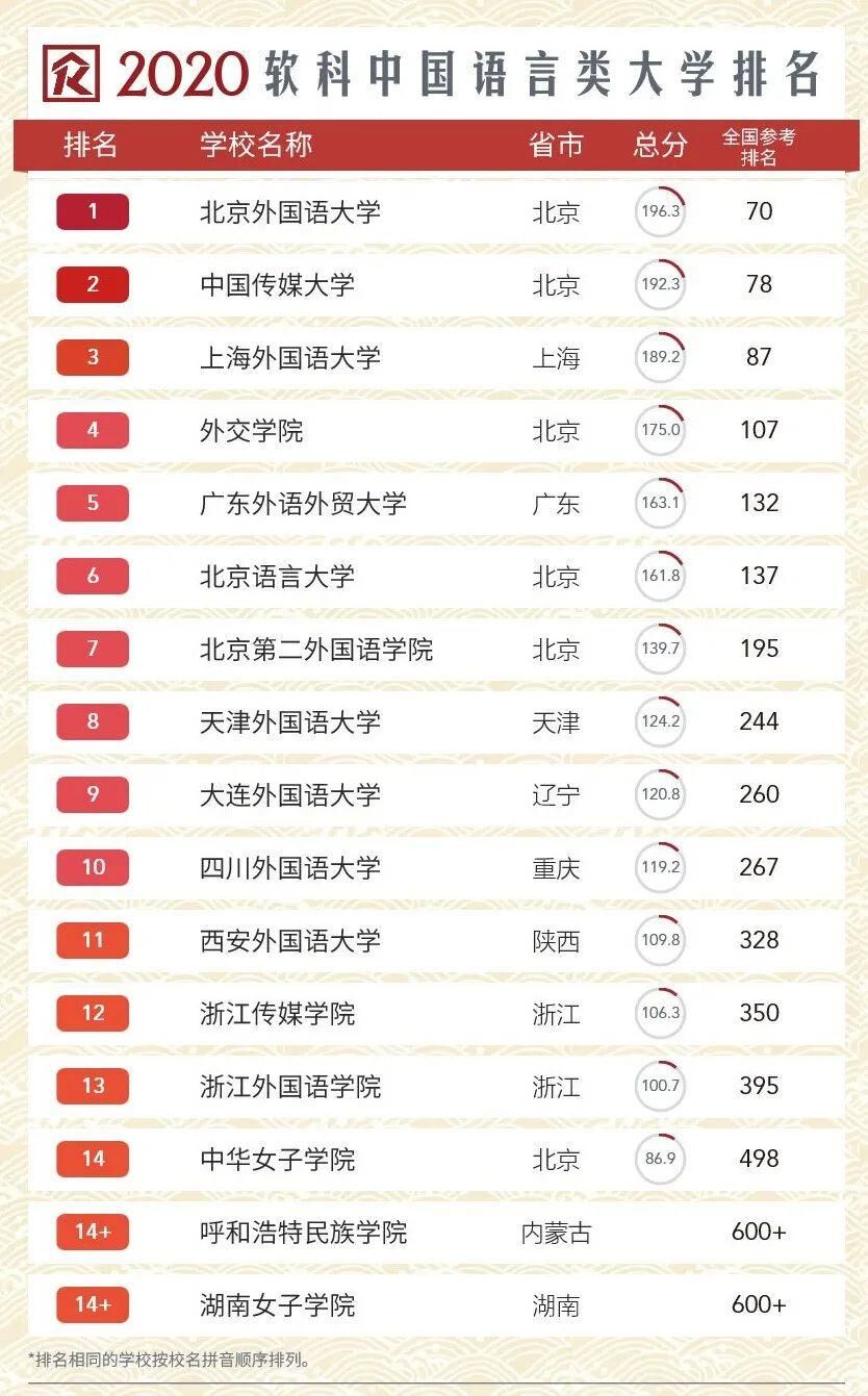 2020中国语言类大学排名TOP10出炉:北外实力登顶,上外位列第三