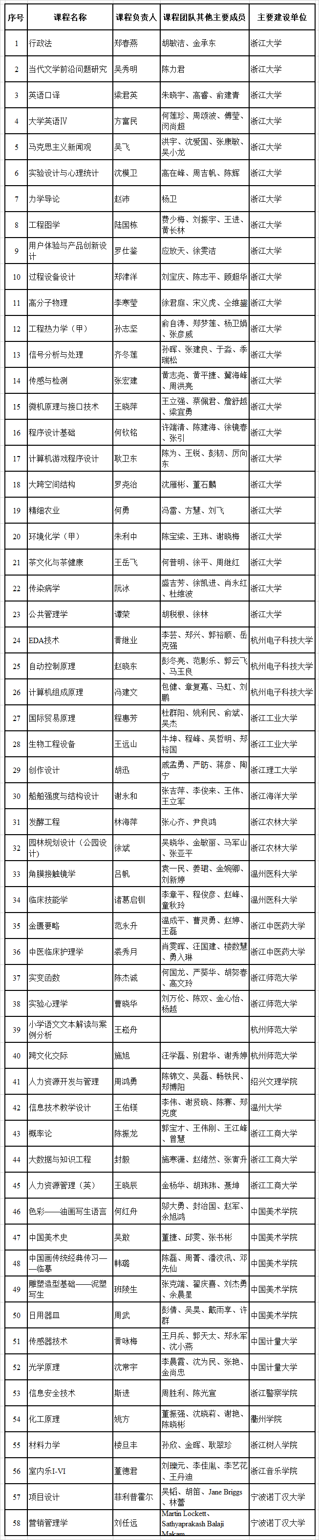 10月30日,教育部公示了首批国家级一流本科课程名单。名单内包括浙江省各高校169门课程,其中浙江大学入选课程最多,共42门。