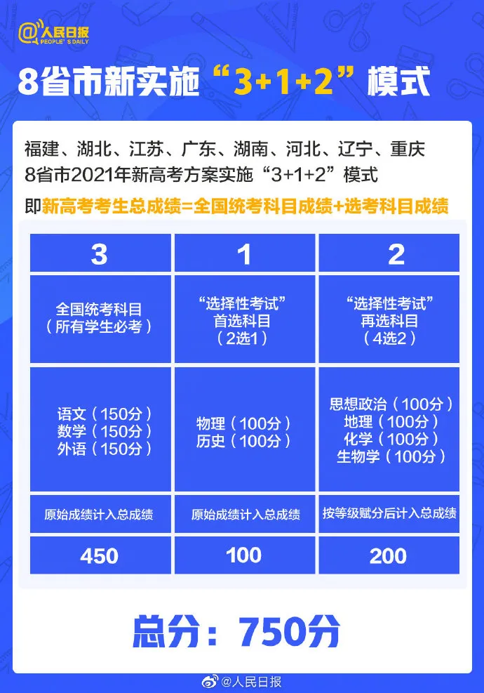 8省市新实施“3+1+2”模式,怎么算分?