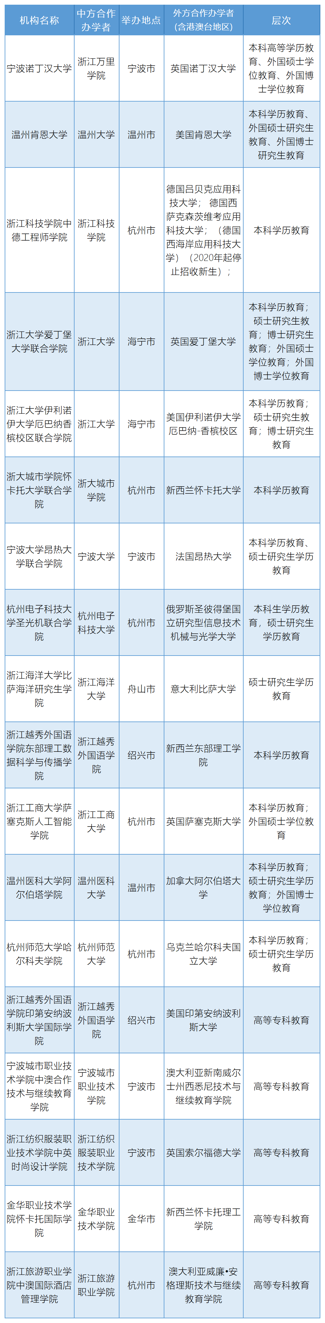 填报志愿参考!2021年浙江省中外合作办学机构信息最新一览表