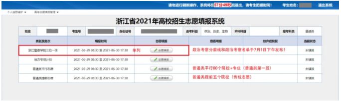 报考浙江警察学院的考生,志愿填报时间与普通类提前一致,但浙江警察学院志愿单列,在普通类提前录取工作开始前完成录取。未被浙江警察学院录取的考生,不影响普通类提前录取5个院校志愿的投档录取。